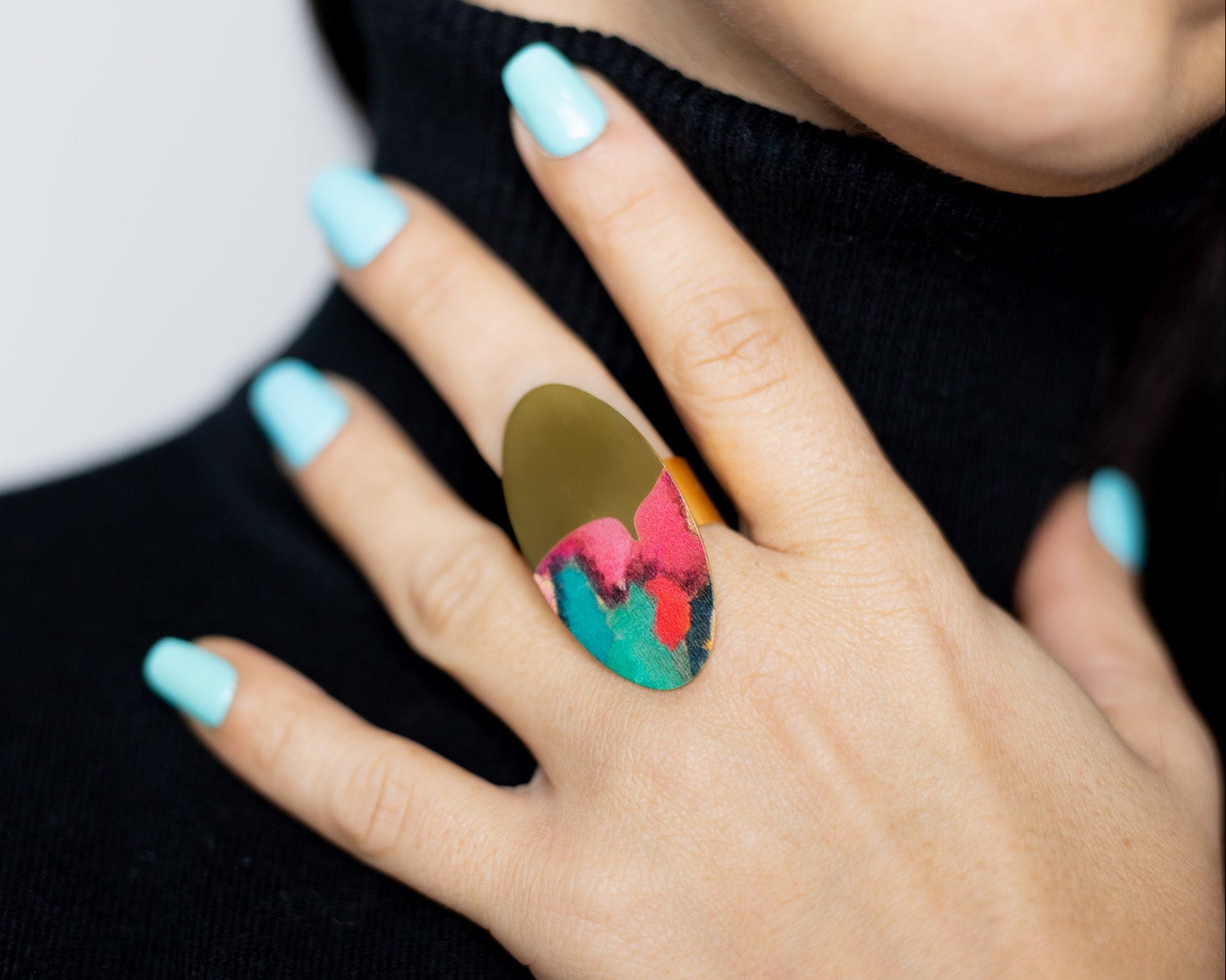 e la tenacia si riversano nell'Arte e nella bellezza dei Colori. Le forme geometriche, delicatamente smaltate con infinite palette pastello, richiamano le tele, creando un connubio perfettotra arte e gioielleria.