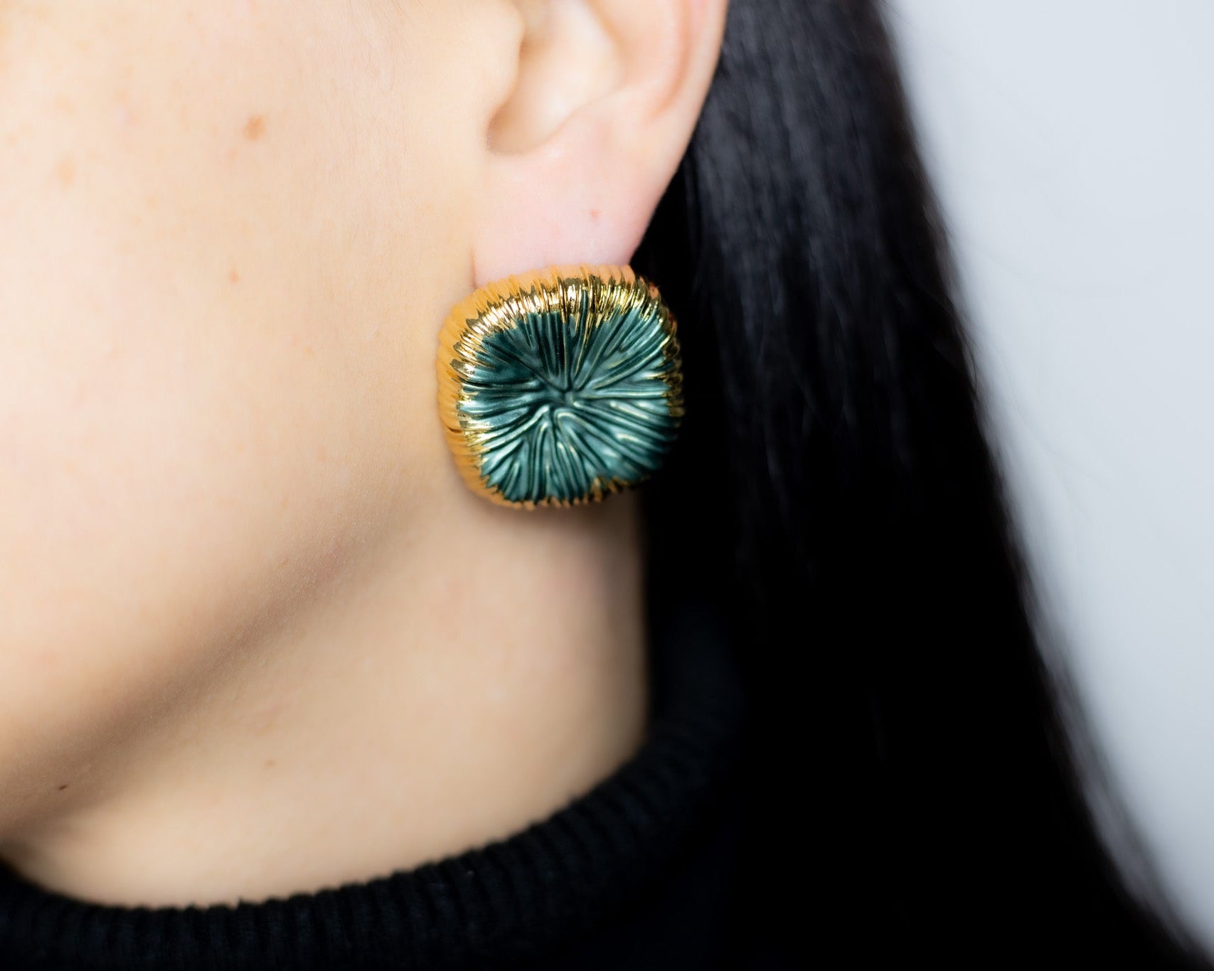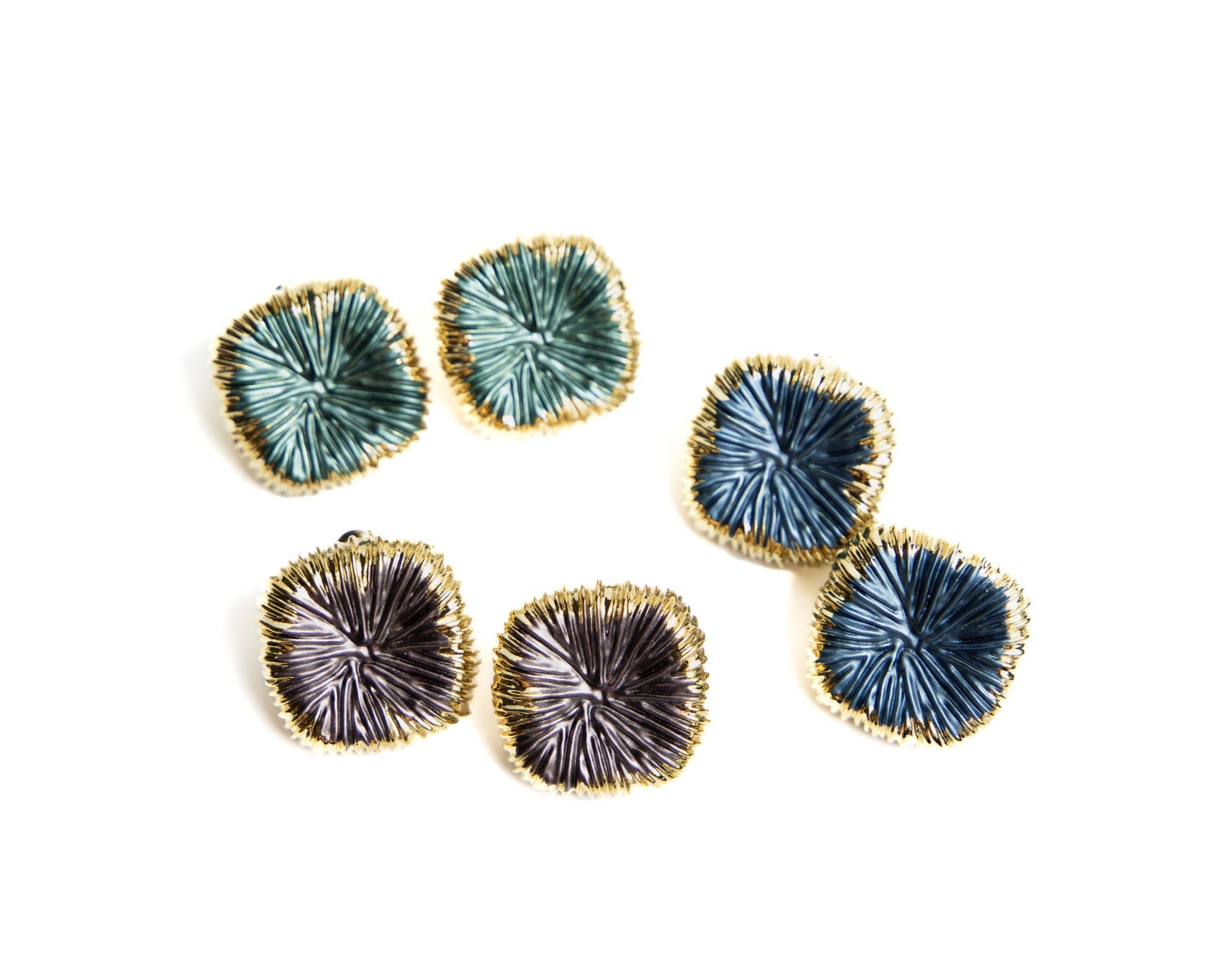 Realizzati in acciaio inossidabile 316L di qualità premium, con finitura in smalto opaco e dettagli in acciaio dorato lucido, uniscono rigore e poesia. Disponibili in tre varianti di smalto – blu, verde e caffè – portano con sé un’anima retrò e un fascino vintage senza tempo.