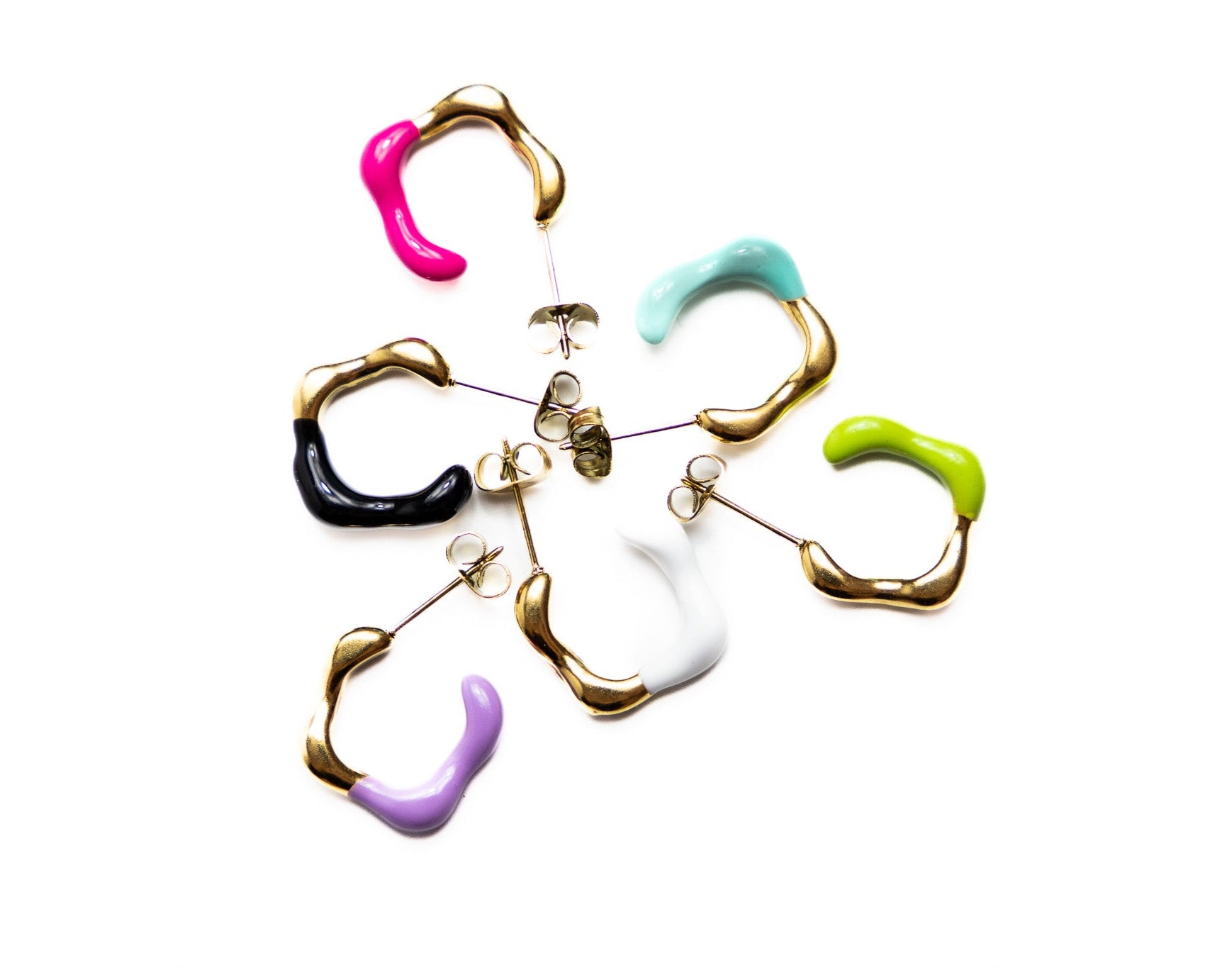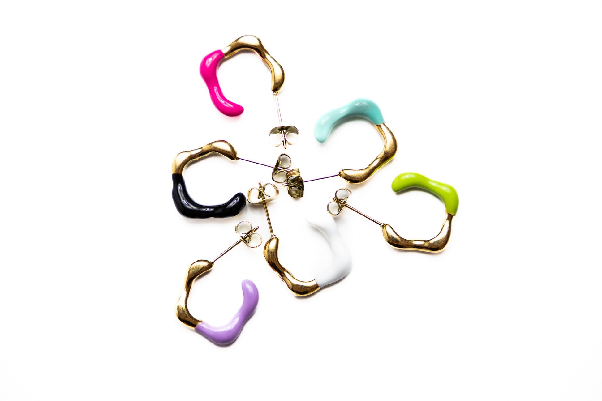 Gli Orecchini Acqua sono realizzati in Acciaio Inox con smaltatura, garantendo ipoallergenicità, resistenza e durata. La varietà di colori come il verde acqua, il nero, il bianco, il verde e il viola li rende perfetti per ogni stagione, mentre la forma a cerchio aperto con una sezione smaltata in un colore a contrasto aggiunge un tocco distintivo. Peso di 2g e diametro di 18mm.