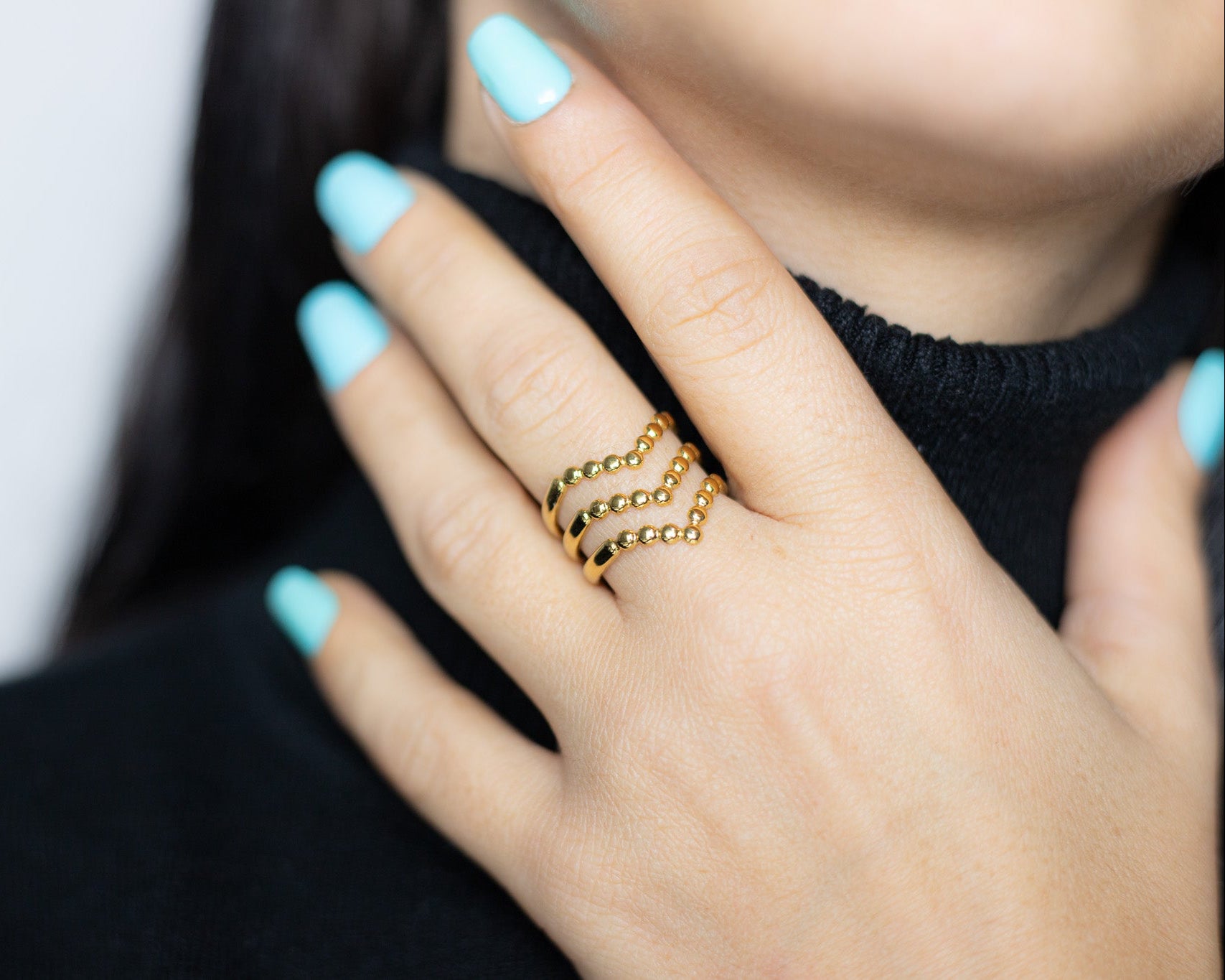 L’Anello Azul è realizzato in acciaio inossidabile placcato oro, con finitura lucida e design regolabile per adattarsi perfettamente a ogni mano. Il dettaglio smaltato in azzurro lo rende vibrante ma raffinato, come un frammento di cielo al dito.