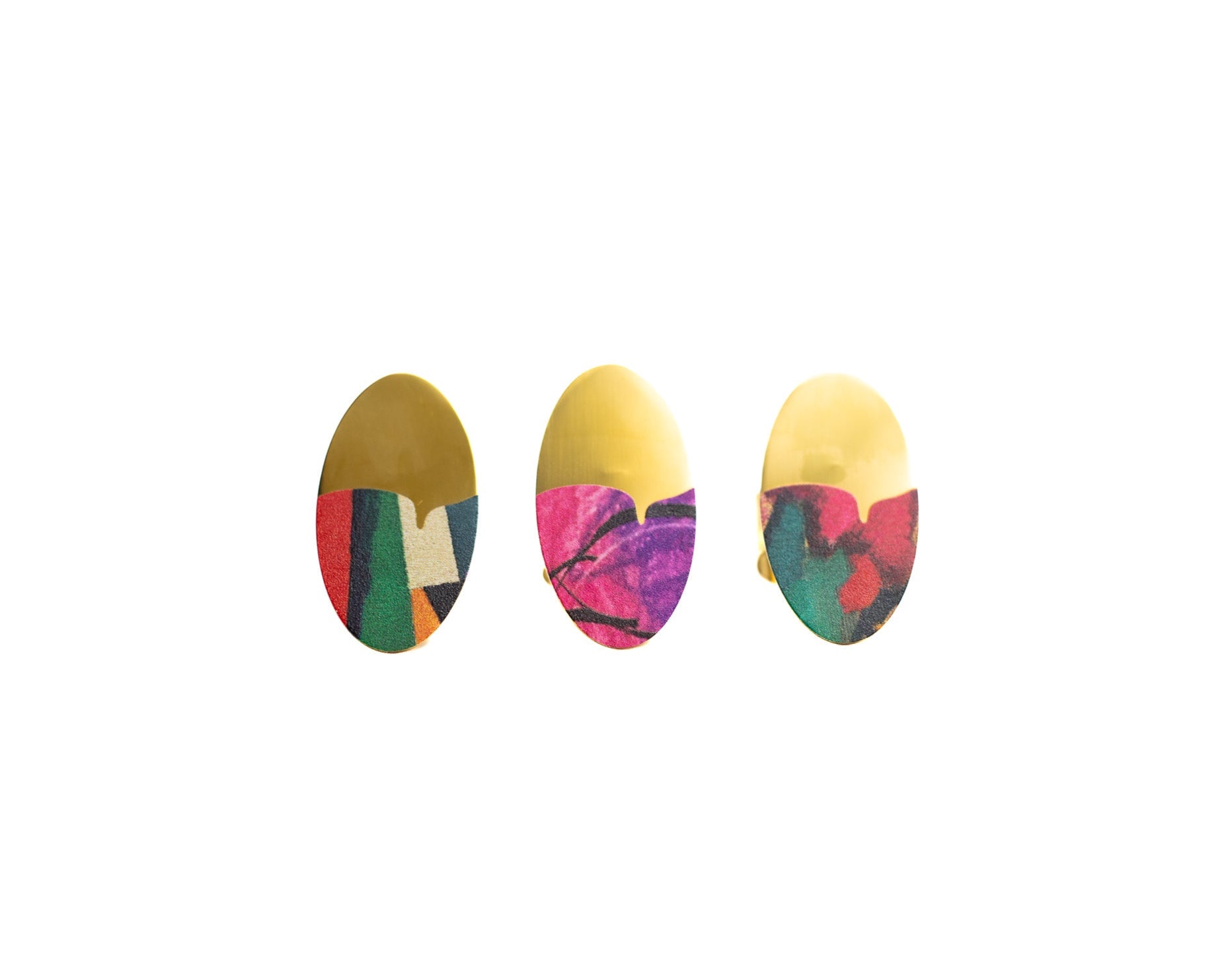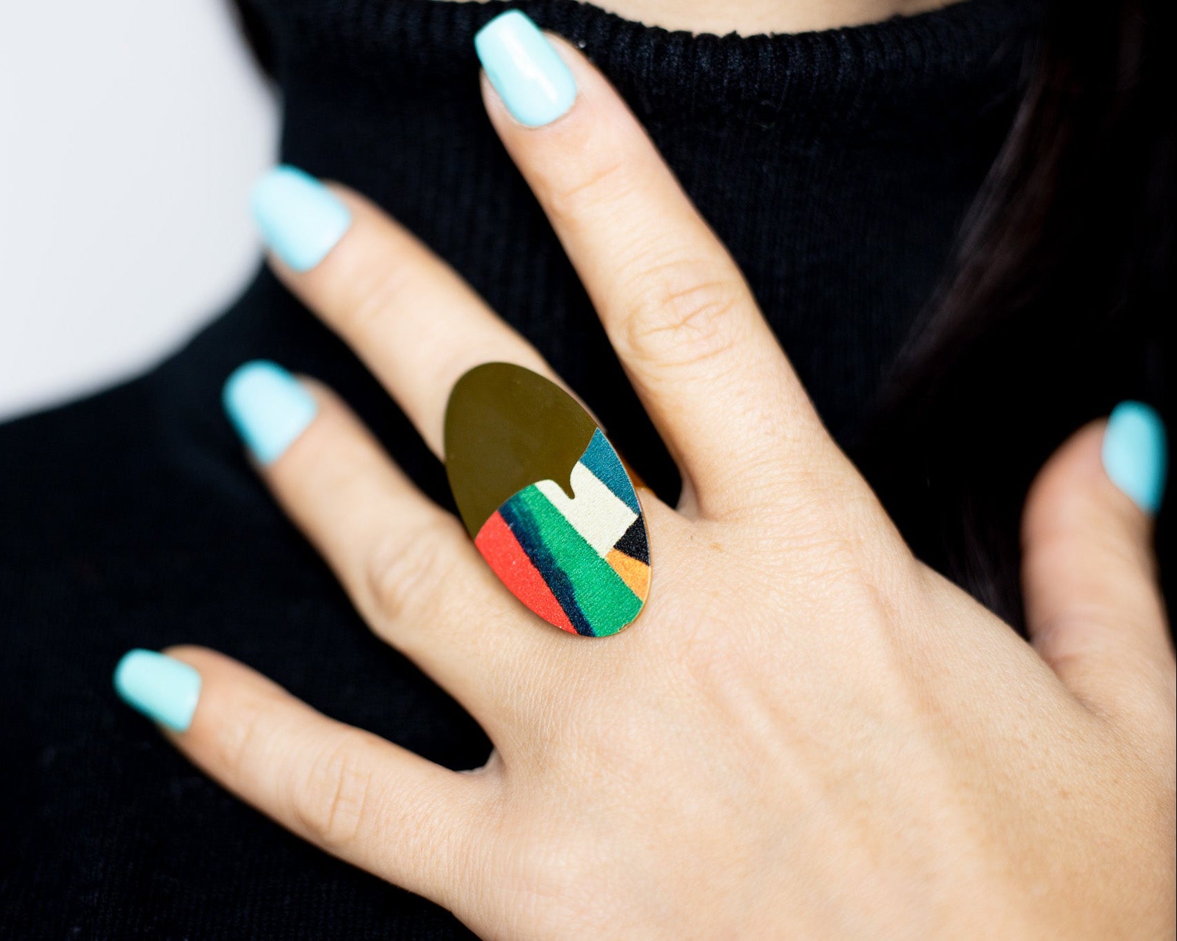 Creato in acciaio inossidabile 316L, con una fascia regolabile che si adatta a te come un pensiero che trova la sua forma. La superficie lucida abbraccia frammenti di colore vibrante, ispirati a pennellate astratte, che rendono ogni anello un piccolo quadro da portare sulle mani. Resistente alla ruggine e allo scolorimento, è un gioiello destinato a restare.