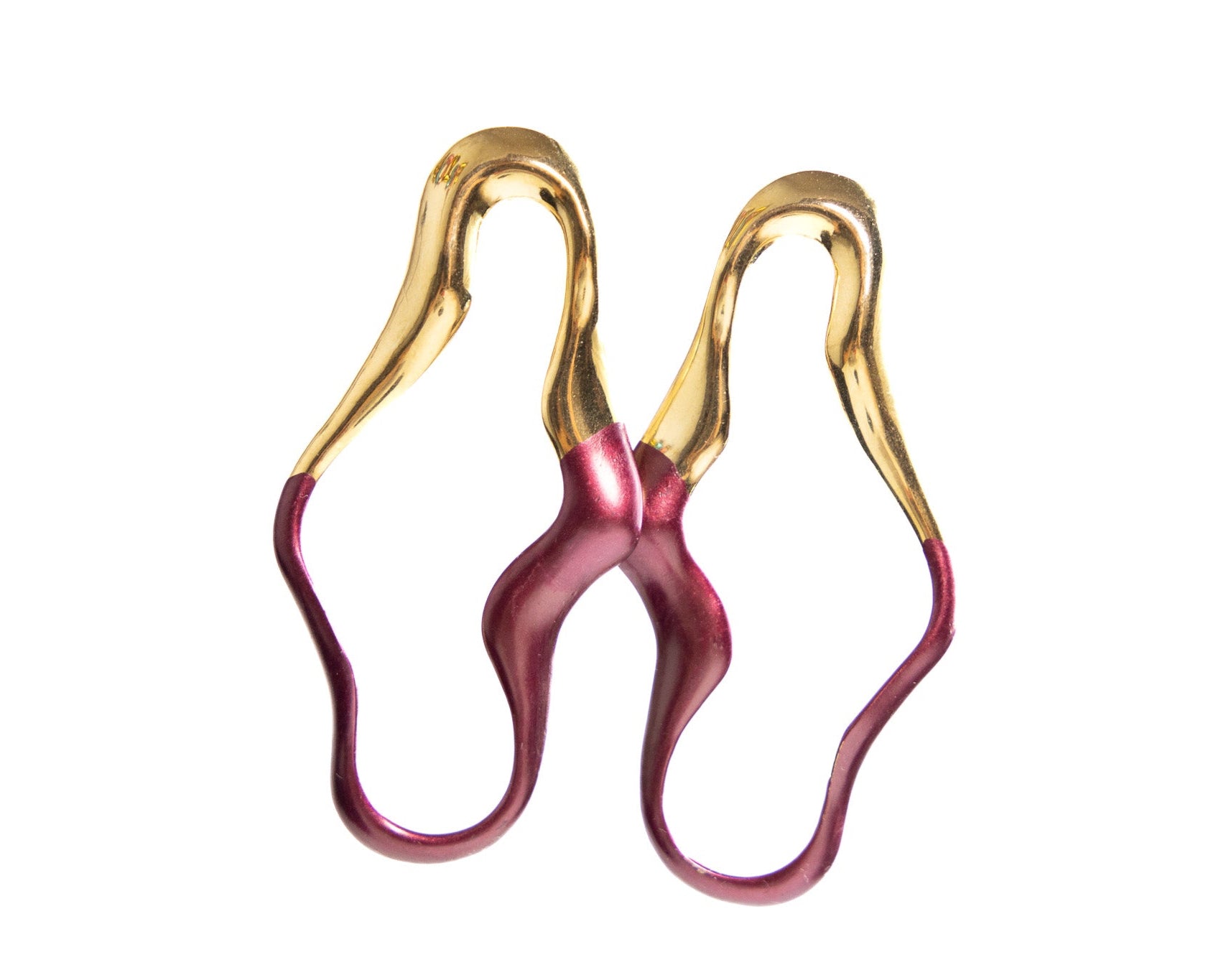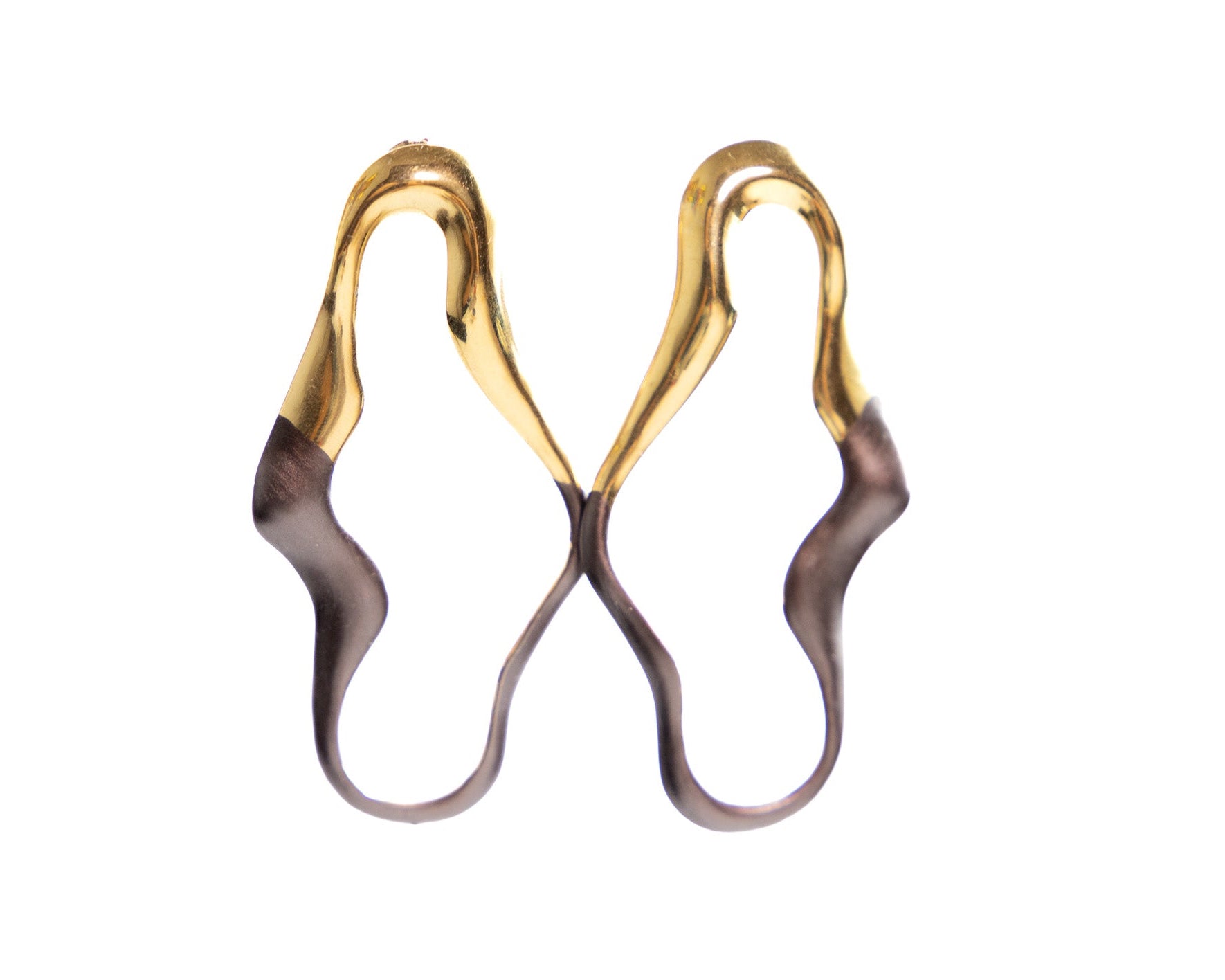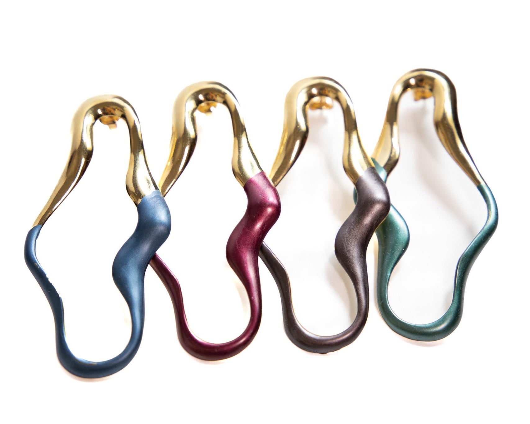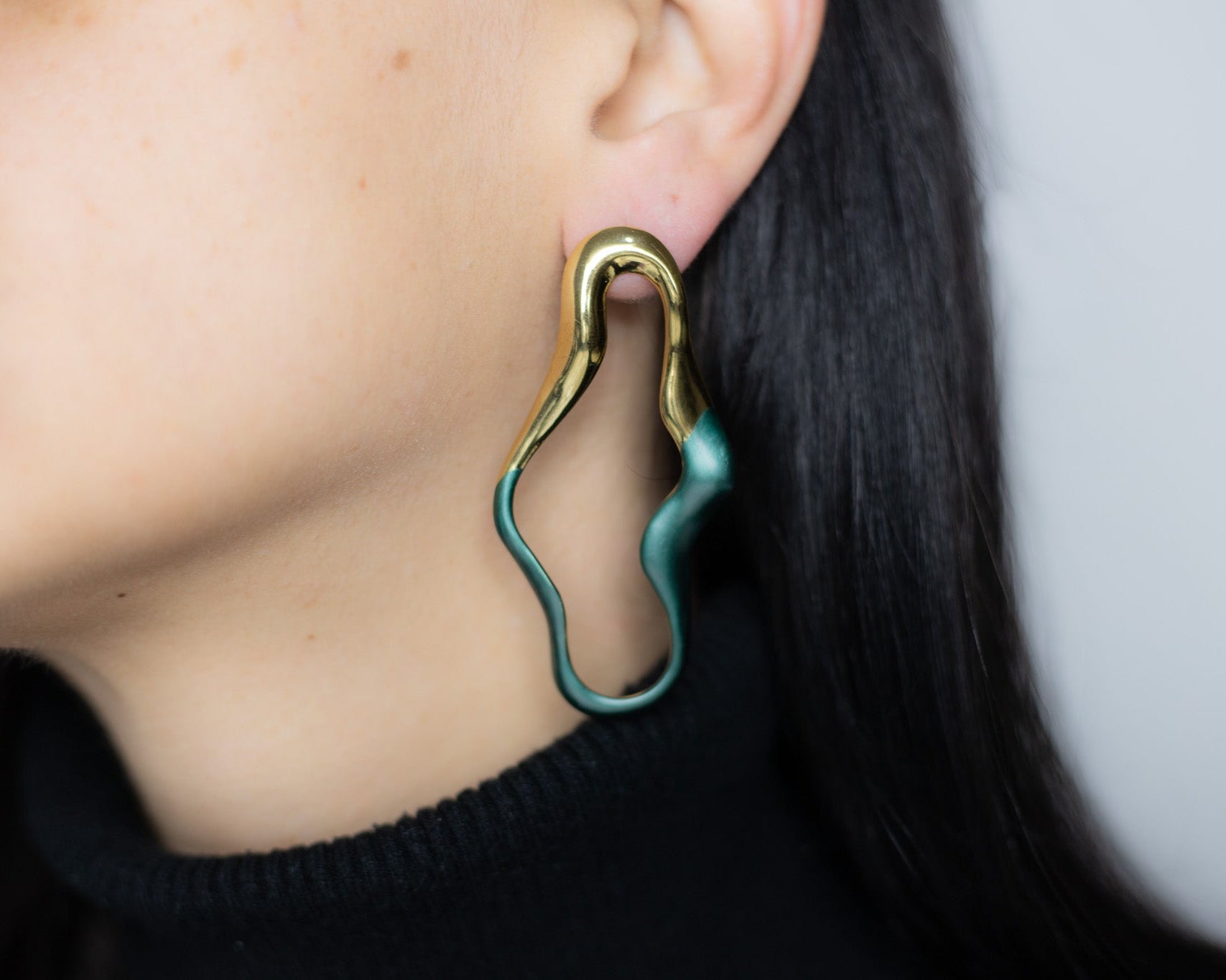 Con una lunghezza di 6.9 cm e una larghezza di 3.4 cm, si distinguono per uno stile artistico moderno, che unisce minimalismo astratto e contrasti cromatici audaci. Le linee curve fluide e irregolari, insieme al gioco di finiture lucide e opache, creano un’aura avanguardista, eccentrica e alla moda. Un accessorio che fonde arte e tendenza in uno stile innovativo e deciso.