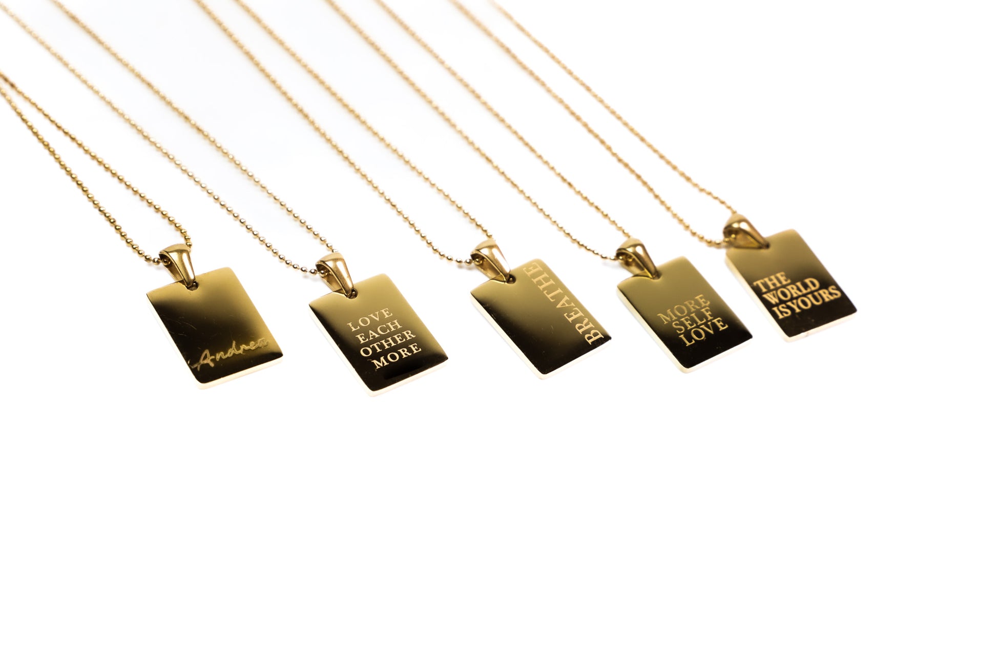 Ogni ciondolo riporta un messaggio inciso, da tenere vicino alla pelle:
