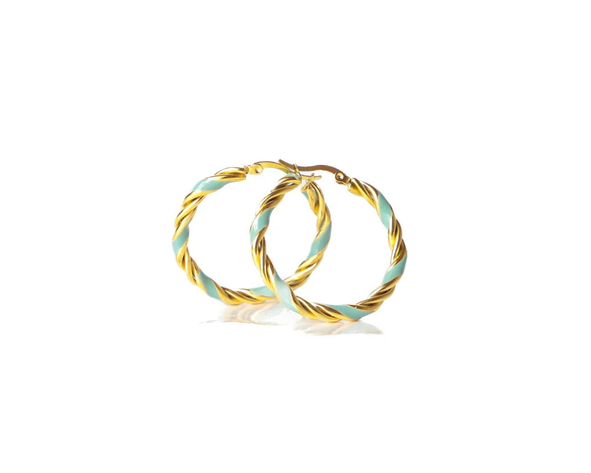 Gli Orecchini Querida sono realizzati in acciaio inossidabile, garantendo resistenza, brillantezza e sicurezza anche per le pelli più sensibili. La doppia spirale intrecciata richiama l’abbraccio di un legame profondo, mentre la finitura bicolore dona carattere e luce. Disponibili in due varianti cromatiche — corallo o turchese — rappresentano due lati dell’anima: la passione ardente o la calma che resta.
